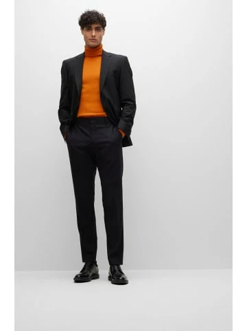 Vielseitig kombinierbares BOSS Sakko. Das Innenfutter mit Logo-Print verleiht dem Herren-Einreiher aus einem elastischen Woll-Mix einen charakteristischen Touch. Die gerade Passform sorgt für eine zeitlose Silhouette. Für unsere RESPONSIBLE Produkte verwenden wir immer mindestens 60 % nachhaltigere Rohmaterialien. Dieses Produkt besteht aus mindestens 60 % nachhaltiger gewonnener und zertifizierter Wolle. Nachhaltigere Wolle bedeutet für HUGO BOSS, dass das Material die Standards der Fünf Freiheiten für das Tierwohl einhält. Regular Fit Fallendes Revers Zwei-Knopf-Leiste Brusttaschen mit Leiste Seitliche Pattentaschen Knopf-Manschetten Seitenschlitz Mit Innenfutter Pflegehinweise: Bleichen Nicht erlaubt, Bügeln geringe Temperatur, Nicht Trockner geeignet, Nicht waschen